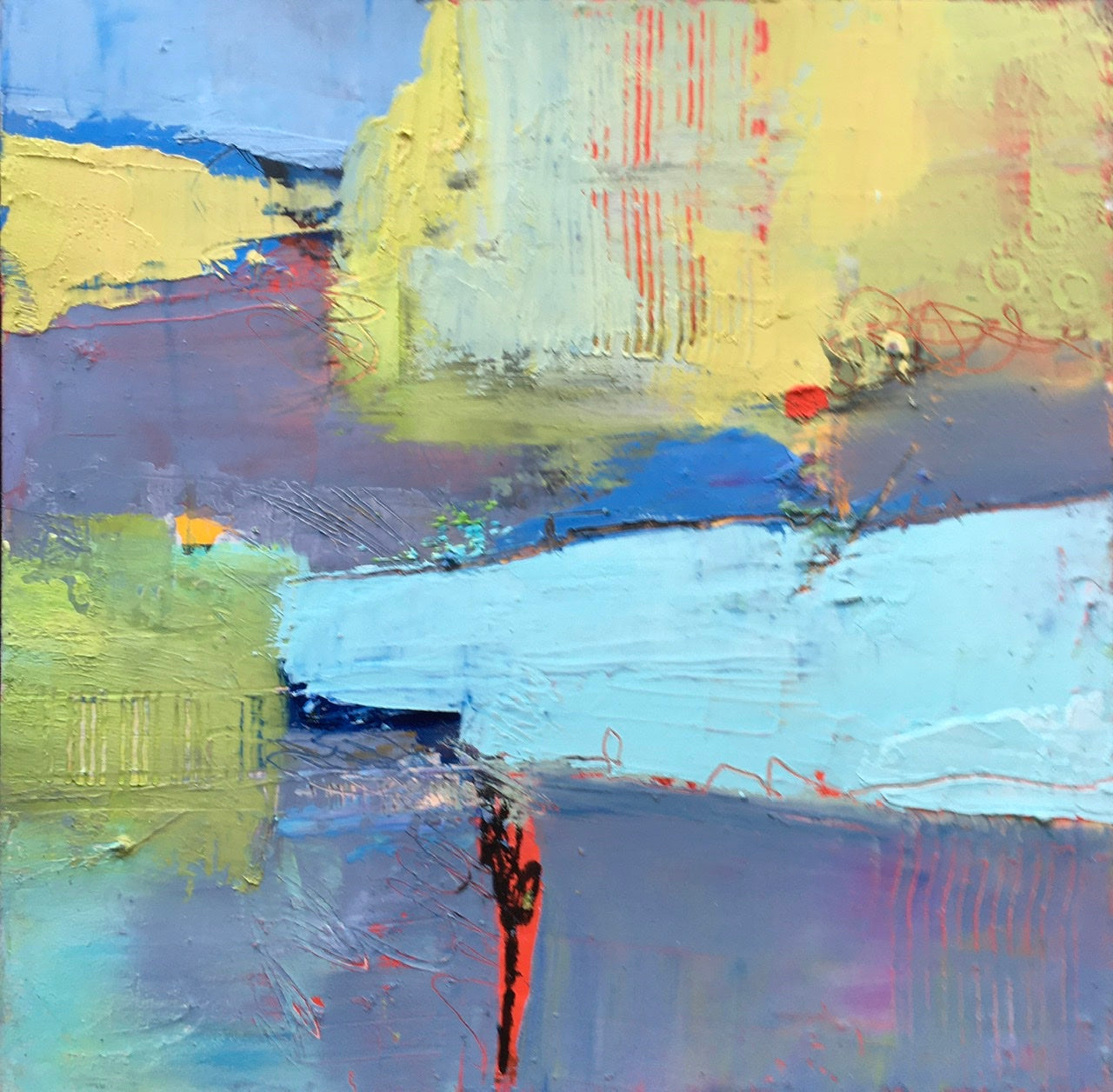 At the Break of Dawn offers a stunning abstract landscape painting. This artwork is made with cold wax and oil on a 12x12 inch birch panel. Rich blues,mauves greens, and yellow hues are delicately blended to create an impactful and memorable piece.