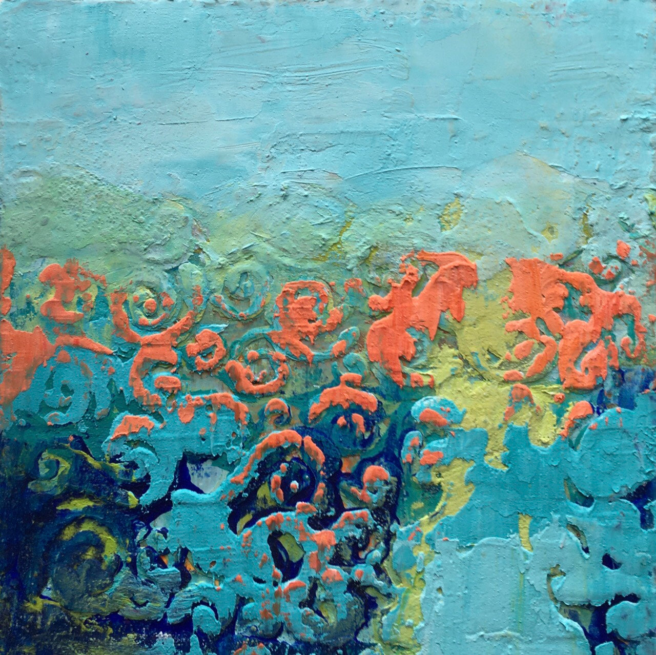 “Glowing Embers" is a cold wax and oil painting done on hardboard