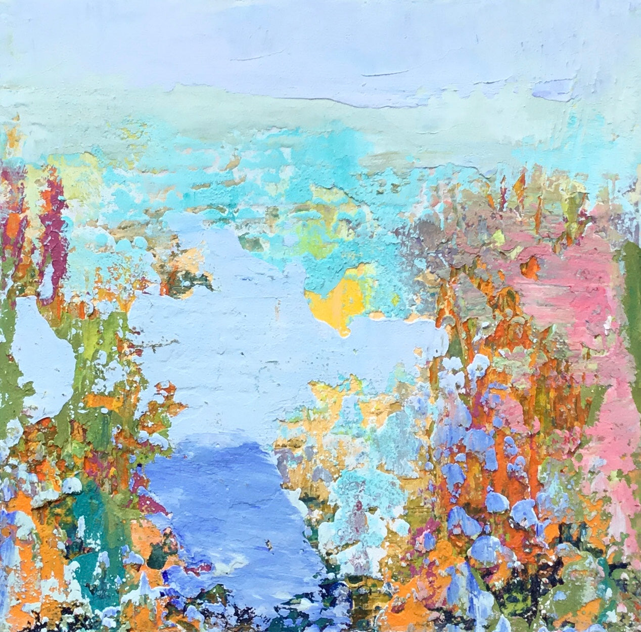 “In Bloom" is a cold wax and oil painting done on a birch cradled panel