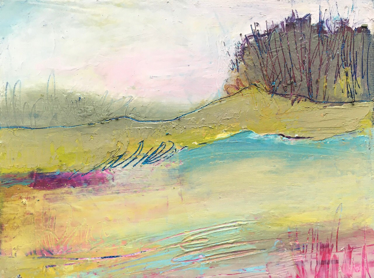 “Misty Morning" is a cold wax and oil painting done on canvas panel.
