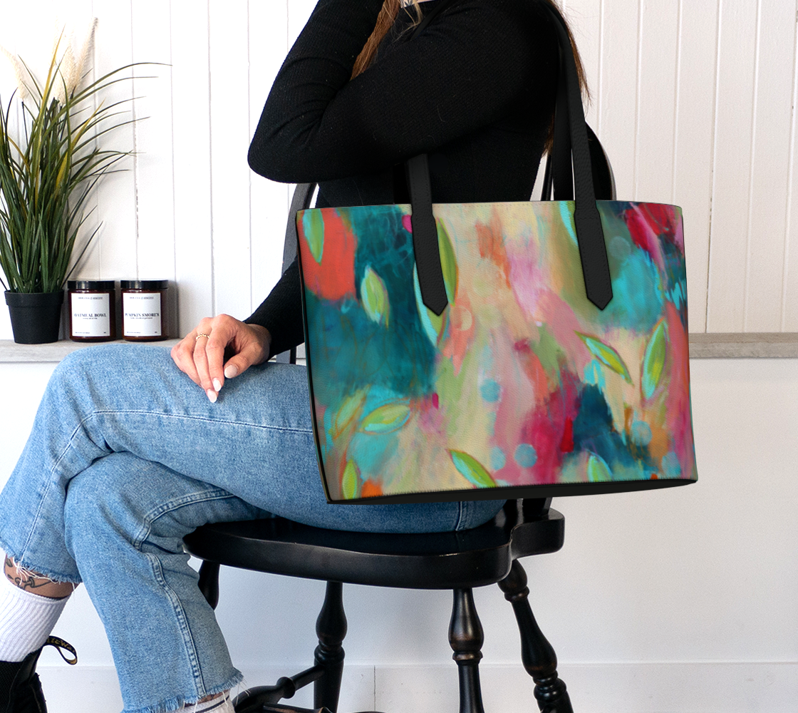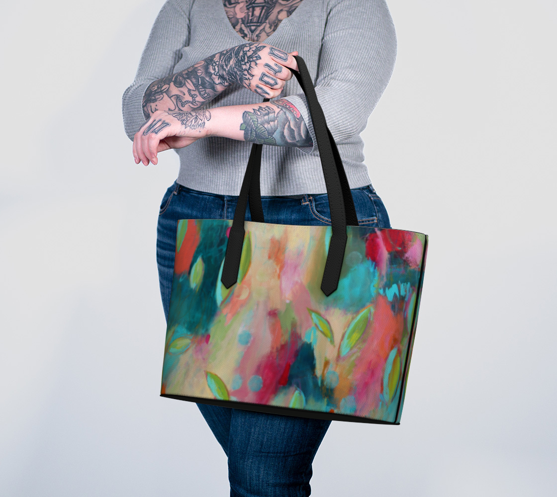 School days, vacation days, or business days, the printed vegan leather tote bag is perfect for everyday! Custom made from textured vegan pebble leather with inner pockets and professional finishing, vegan leather totes are large enough to fit a 16” laptop but not so large as to weigh you down. Featuring full color permanent print with UV inks, vegan leather tote bags are made on-demand just for you and are strong enough to keep up with your busy lifestyle.