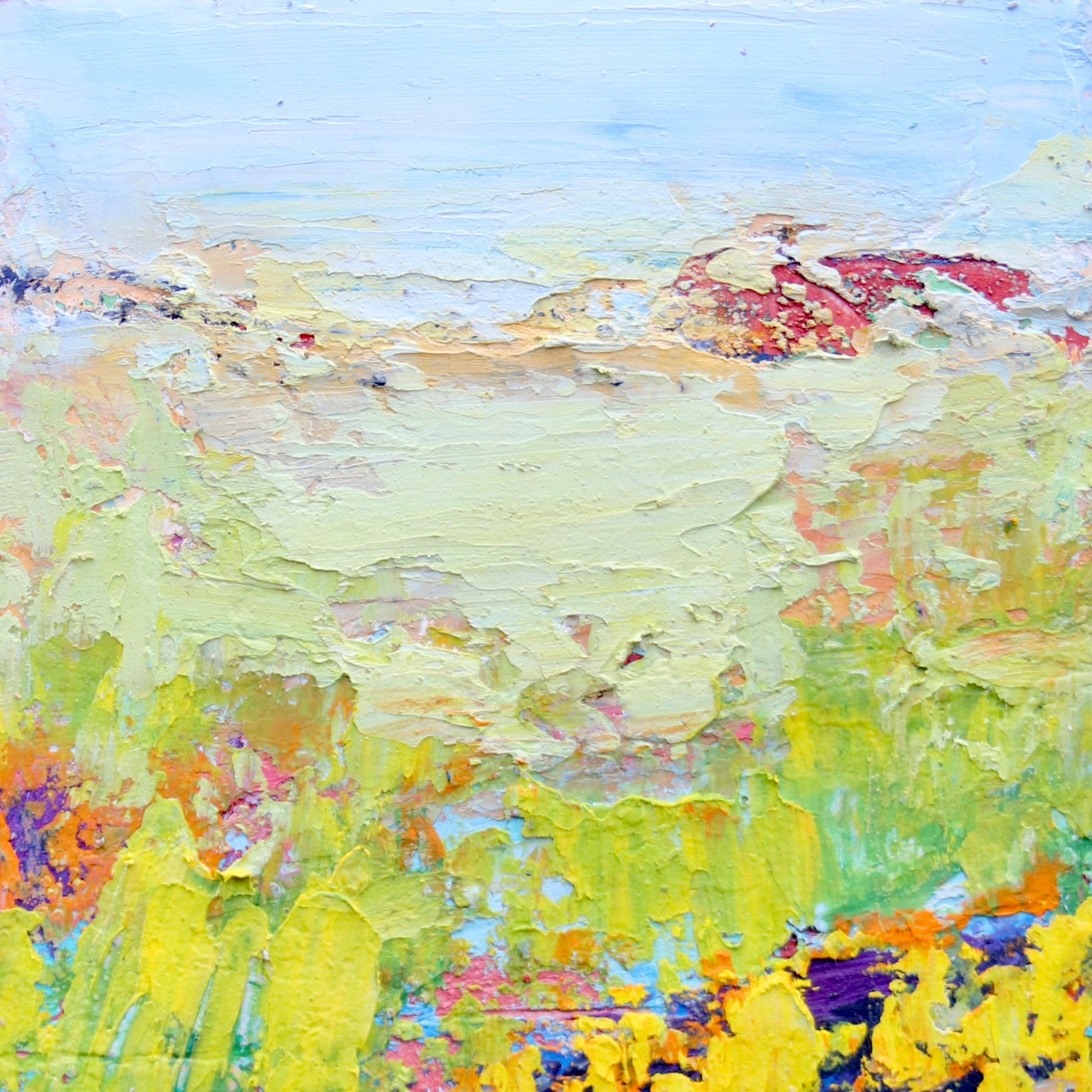 Experience the breathtaking texture and depth of Patt Scrivener AFCA's Spring Renew series. Each 6x6-inch piece is created using a unique combination of cold wax and oil paint, resulting in one-of-a-kind works of art. The cradled panel and painted edges add a touch of sophistication to these stunning paintings.