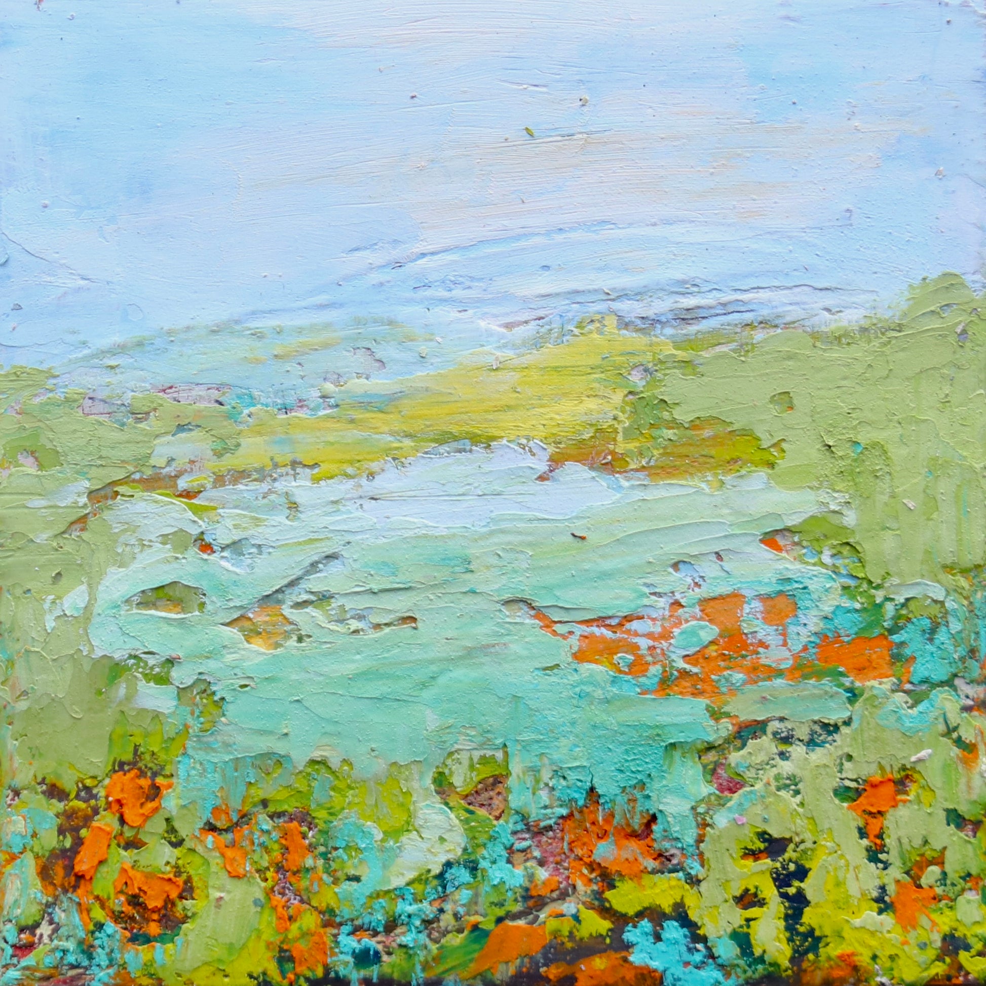 Experience the breathtaking texture and depth of Patt Scrivener AFCA's Spring Renew series. Each 6x6-inch piece is created using a unique combination of cold wax and oil paint, resulting in one-of-a-kind works of art. The cradled panel and painted edges add a touch of sophistication to these stunning paintings.