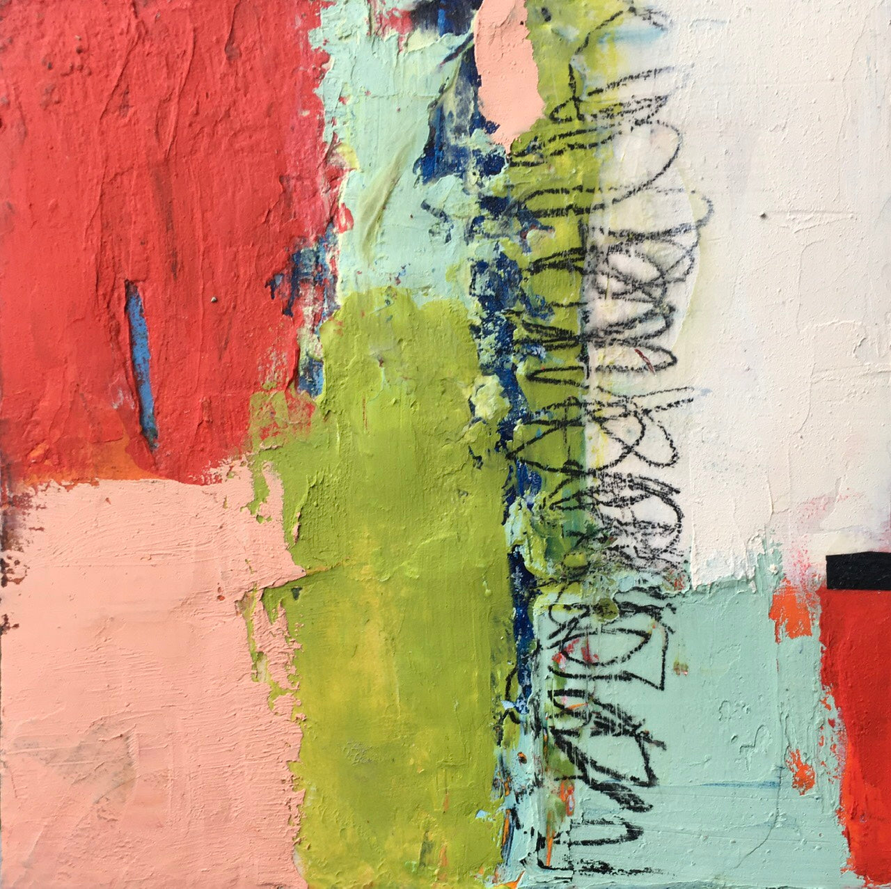 “Tangled Up" is a cold wax and oil painting on a 1.5” cradled panel.