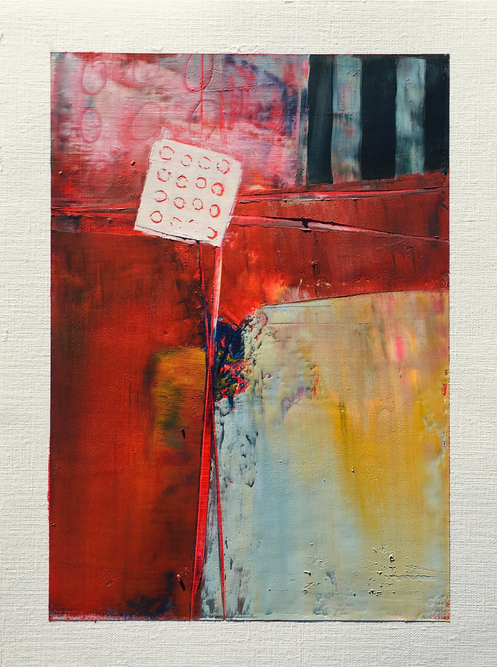 The beginning of a daily painting challenge. "The Bright Side" is a cold wax and oil painting done on paper.