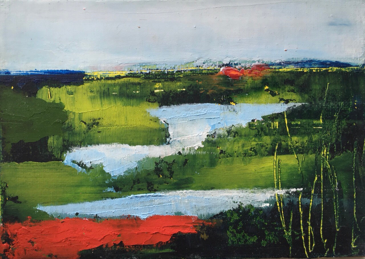 “Water Be Still " is a cold wax and oil painting done on hardboard.